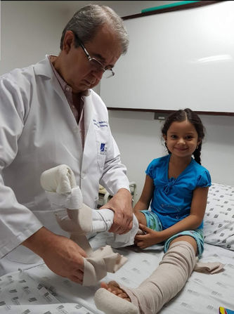 "En 1992 llegó un Ángel médico a nuestra fundación y desde ese momento ha donado su tiempo y profesionalismo para trabajar intensamente por la niñez colombiana mas vulnerable de Colombia. Se trata del Dr. Julio César Palacio, Médico especialista en Ortopedia y Director Médico ad-honorem de Fundación Casa de Colombia. Alguna vez en una entrevista le preguntaron cómo llegó a nuestra fundación y dijo "por estar en el momento justo y a la hora justa". Y es así, como bajo su liderazgo y dirección desde hace 28 años, se desarrolla el programa bandera de la Fundación: Programa de Salud; donde se destaca la labor social dedicada a nuestro proyecto de Ortopedia Infantil, que se realiza mediante jornadas médicas especializadas cada 6 meses, a través de las cuales hemos brindado a niños y niñas con malformaciones ortopédicas un promedio de 23.612 atenciones médicas, entre éstas: Consultas de ortopedia, cirugías- procedimientos quirúrgicos, consultas de seguimiento post-quirúrgico, cambios de yeso y retiros de material de osteosíntesis bajo anestesia. Adicionalmente, donando su tiempo realiza un trabajo conjunto con el área de Trabajo Social, clasificando los casos que se pueden beneficiar de este programa y garantizando acompañamiento a los niños y sus familias para darle continuidad al tratamiento médico indicado en la fase de post-Jornada.